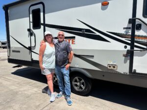 Thank you to Rick for helping us narrow our WIDE search for a “new to us” 5th wheel with patience and care. We settled on a DRV mobile suite which we love! We look forward to our next end, different traveling adventures.